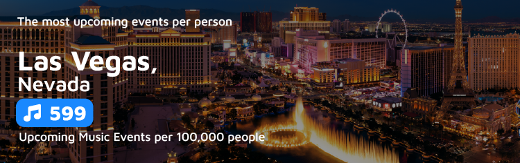 Las Vegas more than lives up to its reputation as the entertainment capital of the world, with 599 upcoming music events per 100,000 residents – over 400 more than any other city. From long-running residencies by Adele and Bruno Mars to the city’s ever-evolving festival, circus, and comedy circuits, Vegas continues to attract the world’s biggest artists and the brightest lights.