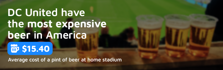 - DC United (MLS) sells the most expensive beer at $15.40 – around 70% higher than the average price of $8.98. Other clubs charging a premium price for beer include the New York Rangers and Philadelphia Union ($15).