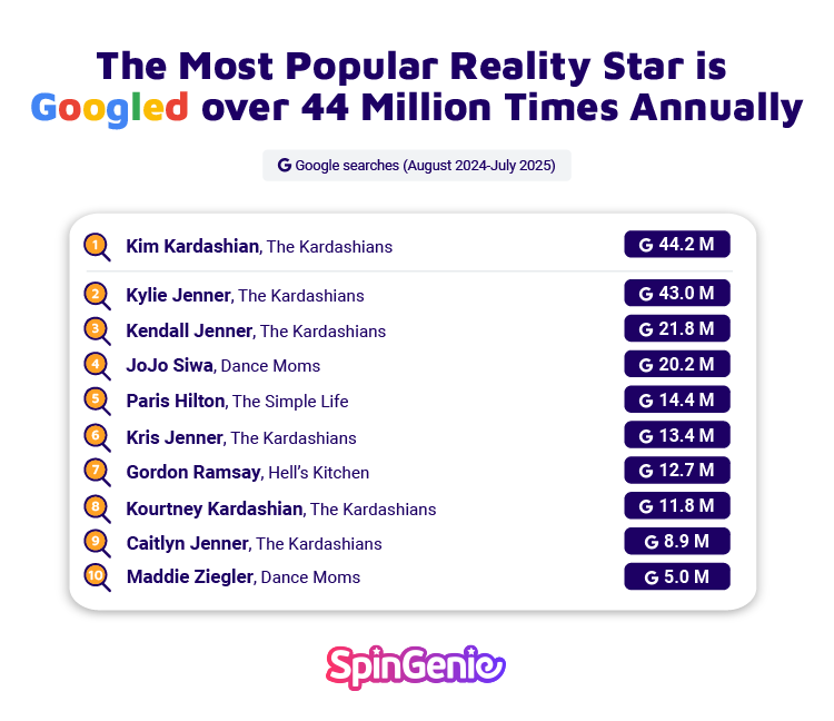 The Most Popular Reality Star is Googled over 44 Million Times Annually