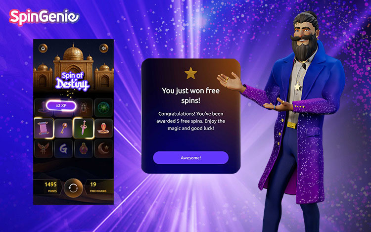 As an added incentive, anyone who takes part in The Spin of Destiny will also receive 20 bonus spins on their Spin Genie account. To ensure that the spins are applied correctly, you are required to use the same email address for both Spin Genie and The Spin of Destiny campaign. After playing the campaign game, the moment you log into Spin Genie, the bonus spins will automatically appear on your account.